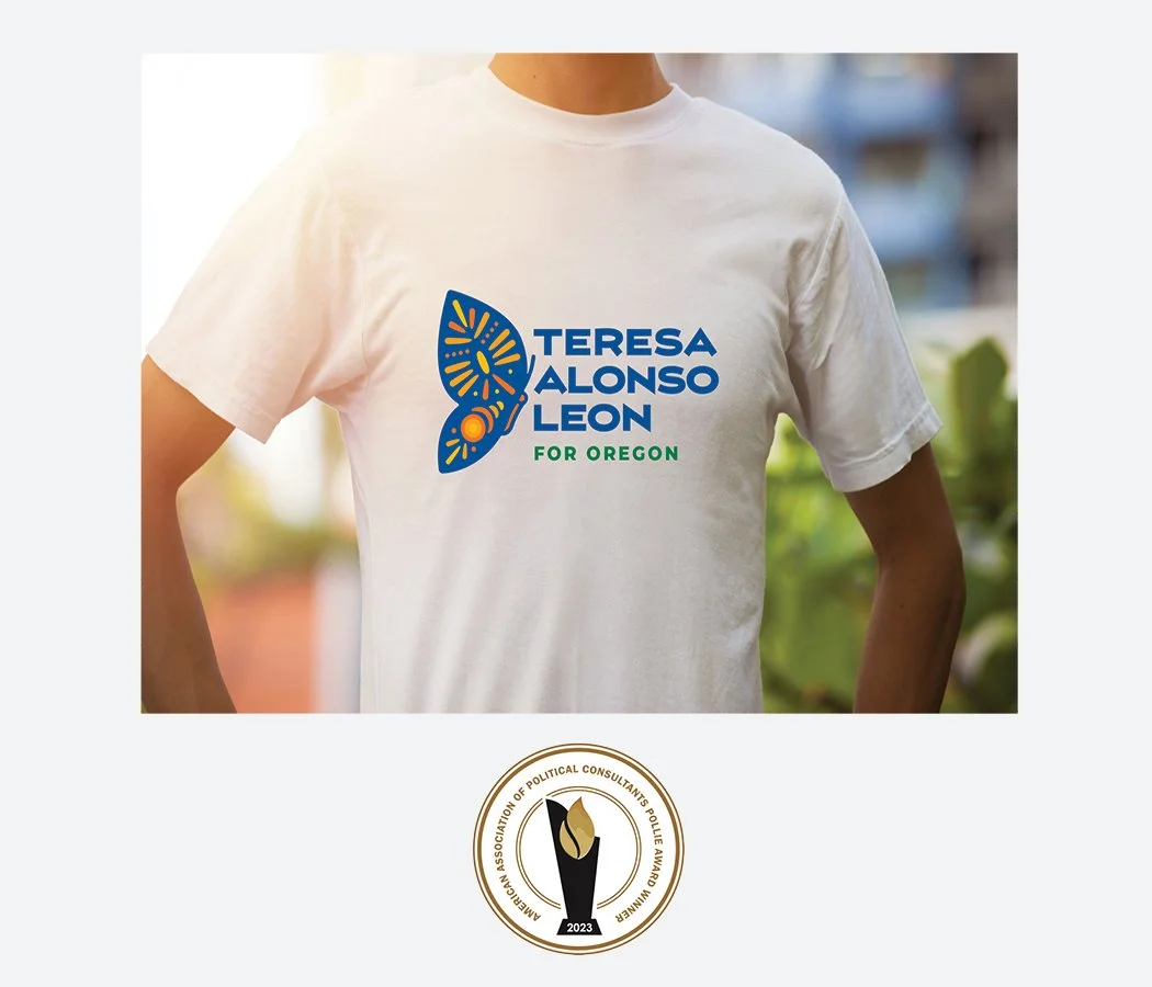 Sisneros Strategies created the Mariposa logo for Teresa Alonso Leon, running for congress and her emotional tie to them in decisive moments of her life. It was a representation of how through her various struggles she flourished like a butterfly and continued to fight and make a difference in the community. The wings on the butterfly also showcase the candidate’s indigenous background. The logo was recognized by the AAPC with a silver award.