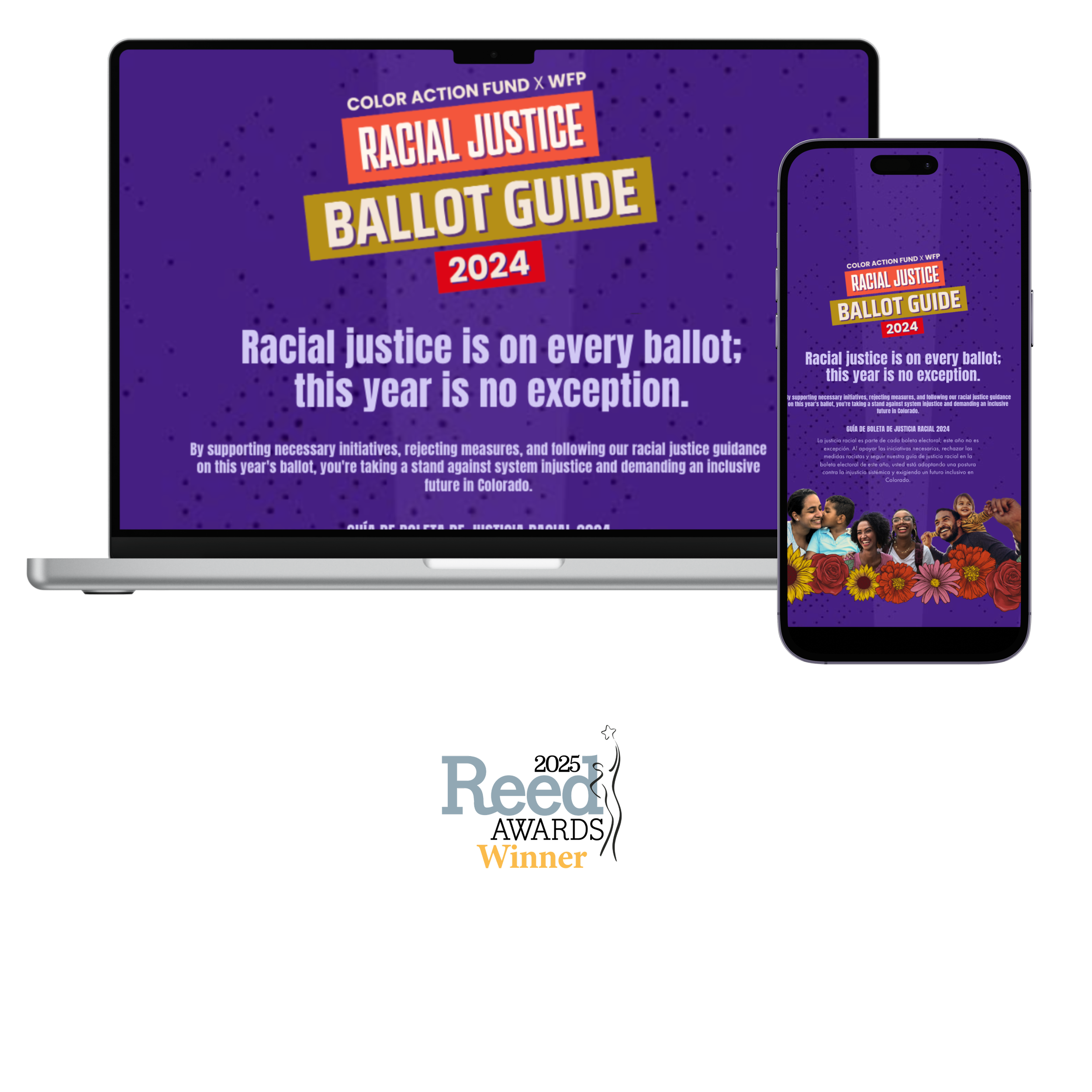 Sisneros Strategies worked with an existing design created by COLOR Action Fund for their Racial Justice Ballot Guide and created a website where voters could see the guide and the organization’s stance on each ballot measure. It was a singular page that was user friendly and bilingual and had the added option for users to download a printable ballot guide. This website was also linked to a programmatic ad campaign with matching art.